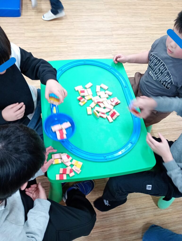 今日のトレーニングはプラレールの上にお皿を乗せ 円になっているレールの上を走らせます🚈 走行しているお皿に得点のあるドミノを沢山チームのみんなと 乗せていくトレ…