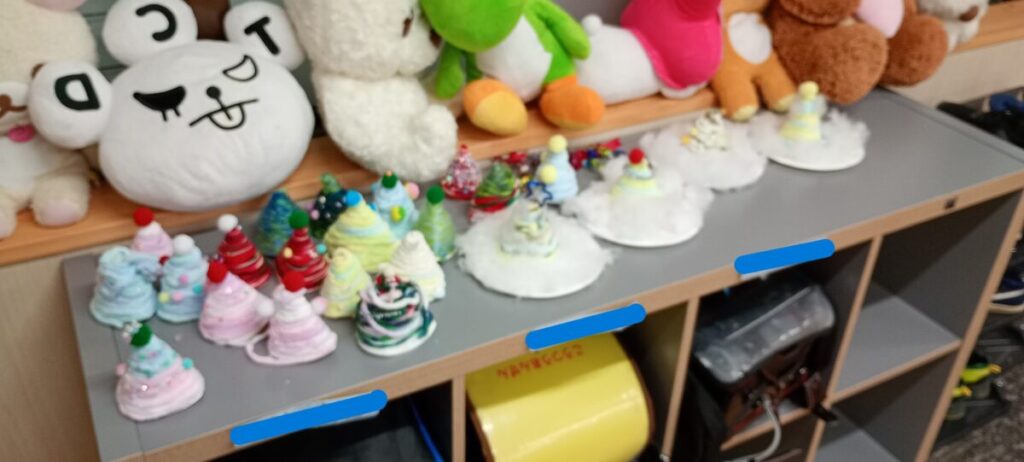 今日もクリスマス制作進行中🤩 リース、ツリーを作成続行中です✨ みんな真剣に「こーしたーい✨」「これ付けよう✨」など、イメージを膨らませて、それぞれ色々なデザイ…