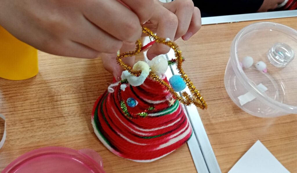 今日は クリスマスリースとツリーなどを作りました!☺️ リースはモールを使って、くるっと丸めて、通して、ねじって。。。。😉 ツリーは、毛糸でぐるぐる、巻いて、…