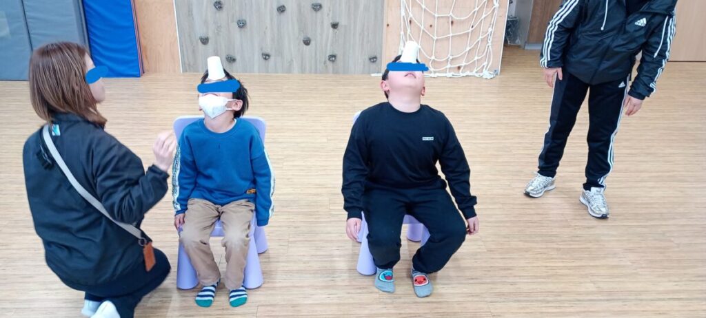 今日のトレーニングは体幹トレーニング💪 おでこに紙コップを乗せて落とさないように動きます! 1回目は椅子から立つことにチャレンジします。 2回目は仰向けから立つ…