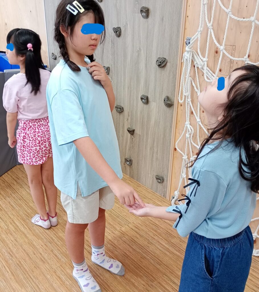 今日は、みんなで「背中に伝言ゲーム」をしました。😊 みんなで輪になって、後ろのお友だちの手のひらに形や文字を書きます。✨✨ それを感じて、前のお友だちの手のひら…